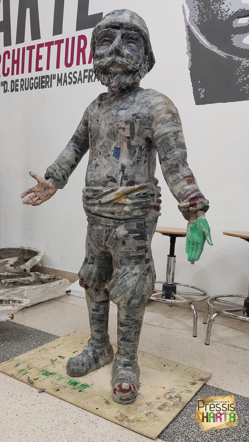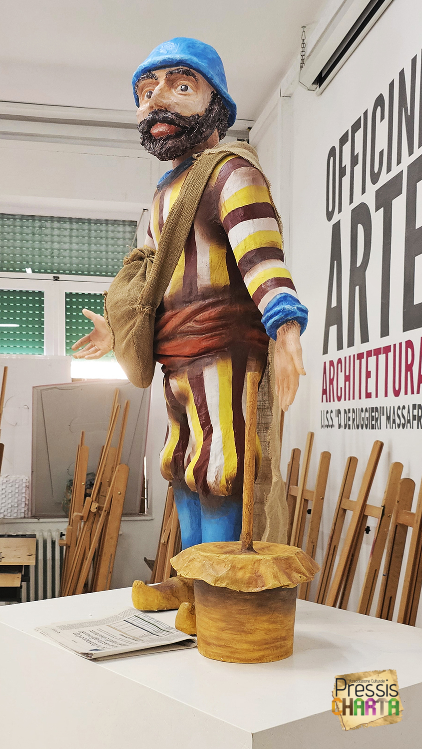 Il progetto, svolto in trenta ore di lezione/pratica ha istruito gli alunni sulle fasi di realizzazione di una scultura a tutto tondo in cartapesta. Durante il quale sono state affrontate tutte le fasi di realizzazione di una scultura, dal bozzetto su carta alla colorazione finale, realizzando la maschera massafrese del “Pagghius”. Il progetto è stato coordinato dal referente prof. Cosmo Molfetta.