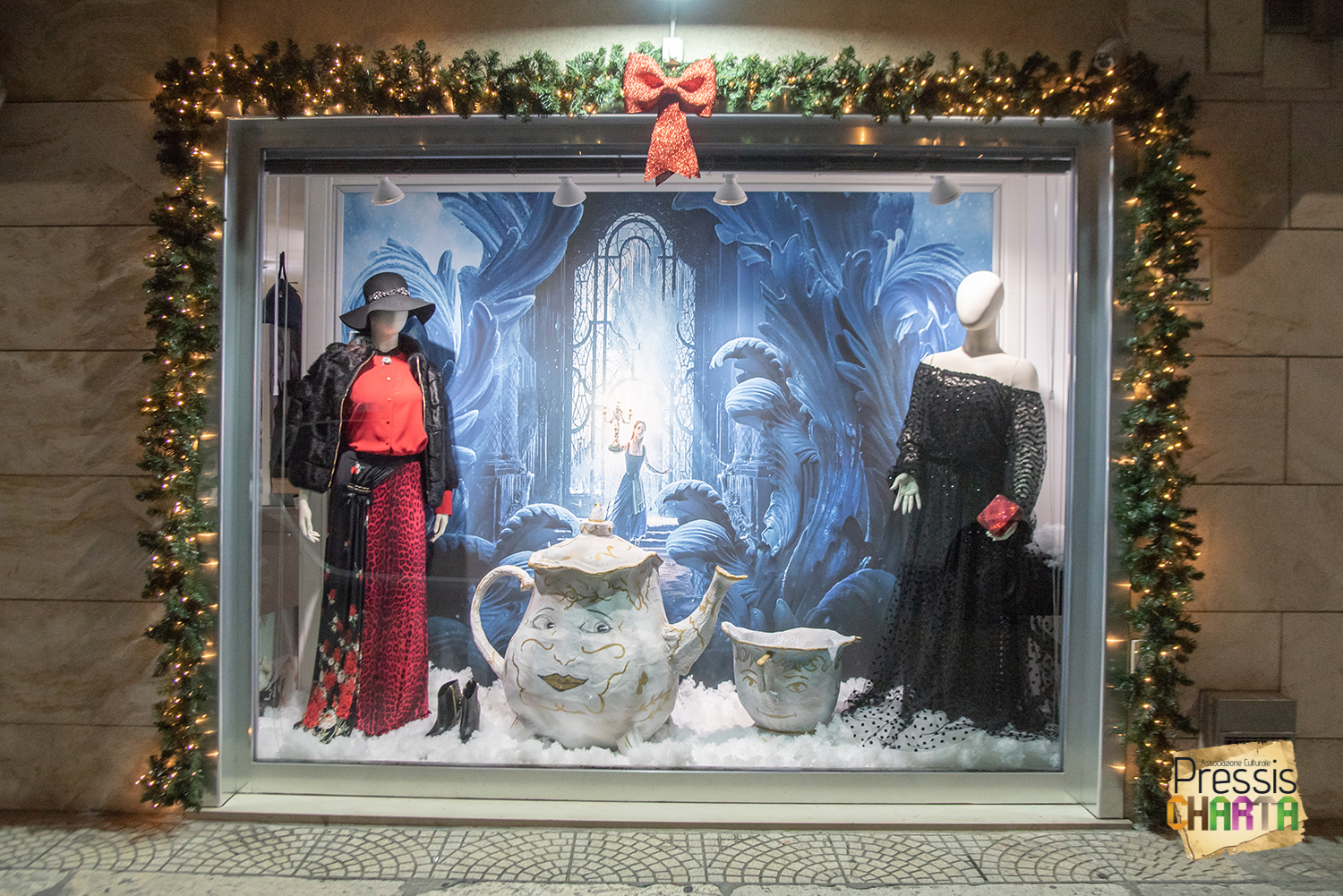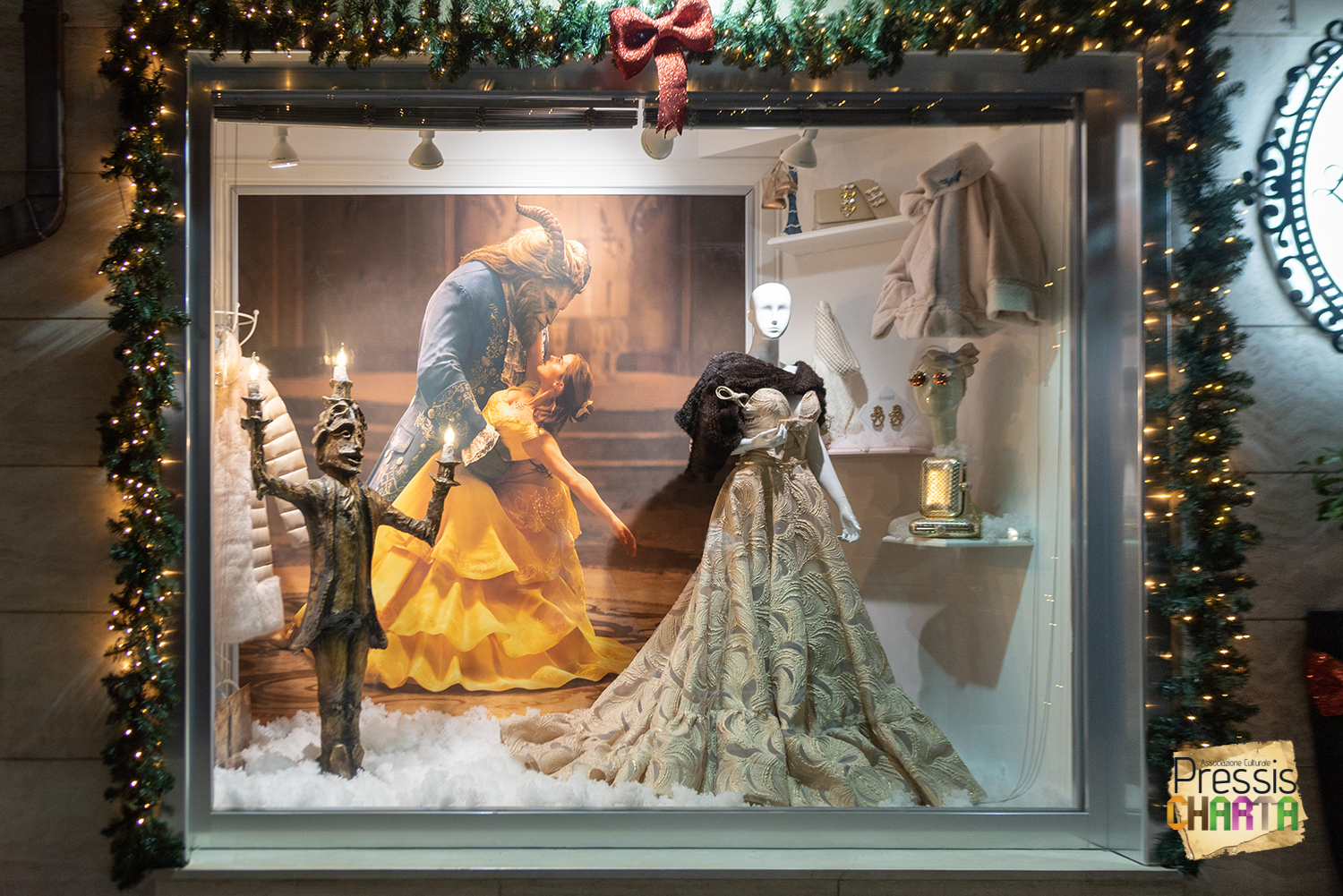 Nello stesso anno, in occasione delle festività natalizie, l’Associazione realizza per il negozio d’abbigliamento La boutique di Carmen, una scenografia in cartapesta dedicata alla fiaba “La Bella e la Bestia”.
