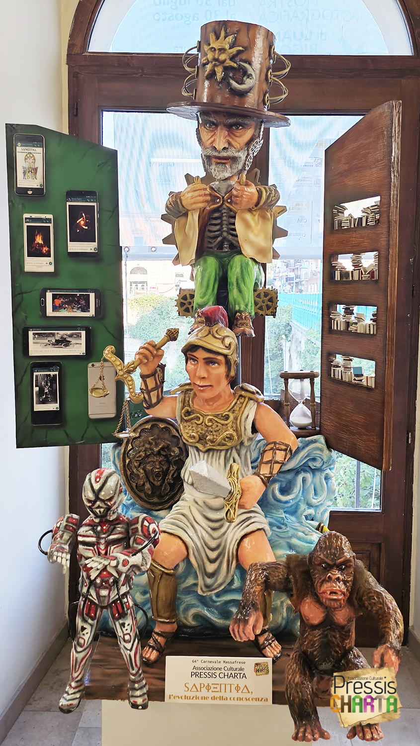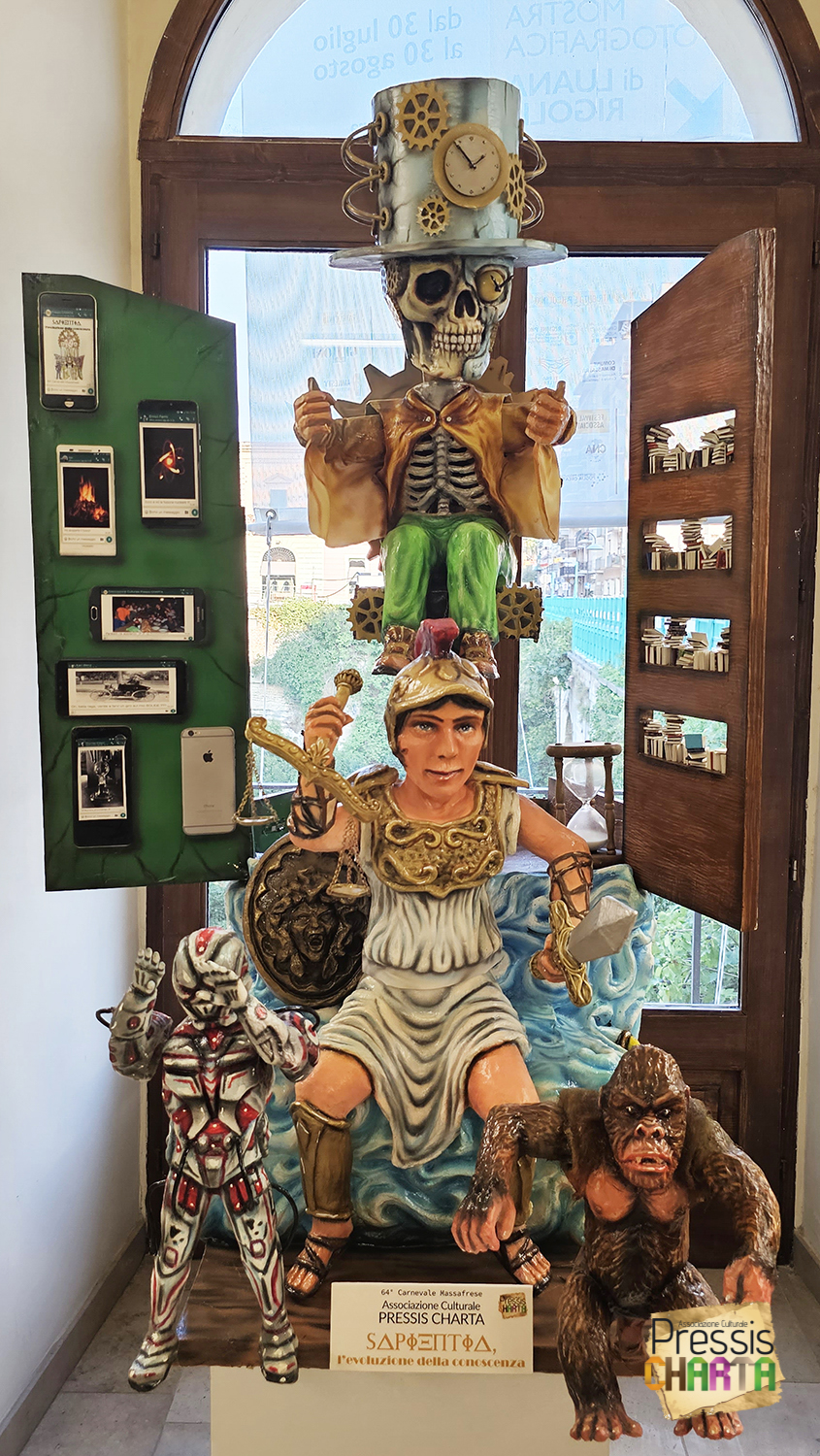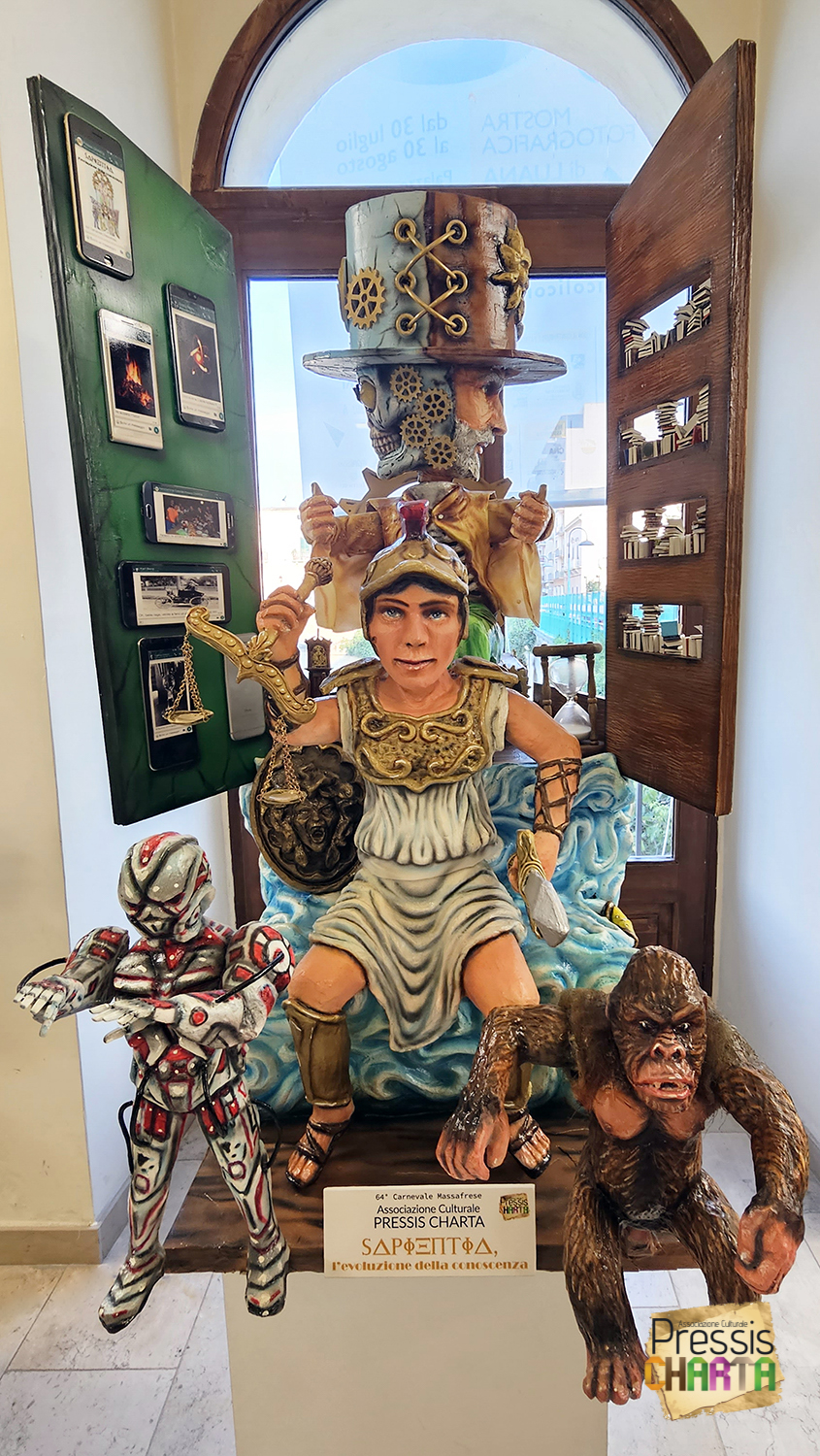 Nel 2022l’Associazione realizza su commissione da parte dell’Ente organizzativo del Carnevale Massafrese, un Carro Allegorico in miniatura raffigurante l’opera in cartapesta che ha portato la Pressis CHARTA alla prima vittoria nella manifestazione carnascialesca intitolata “SAPIENTIA, l’evoluzione della conoscenza”.