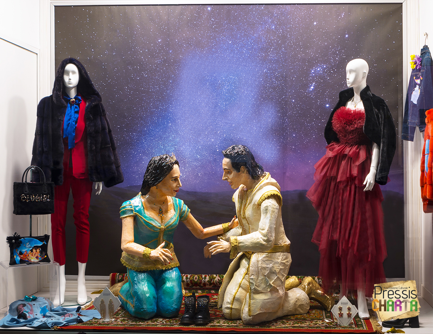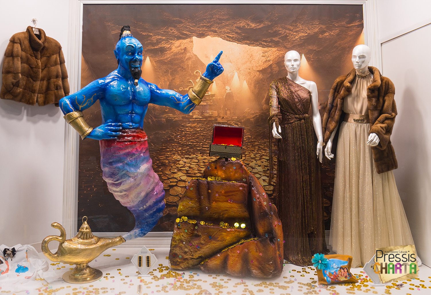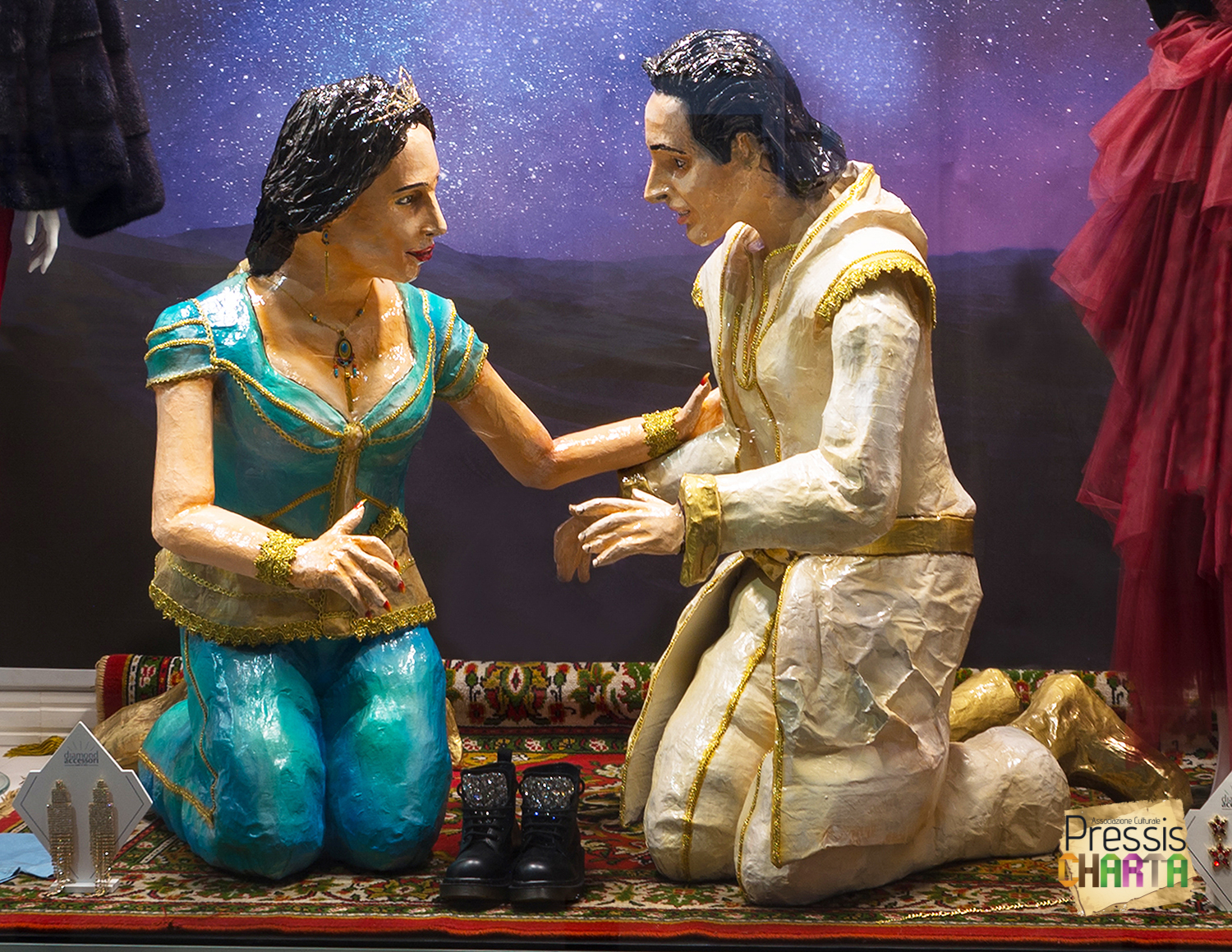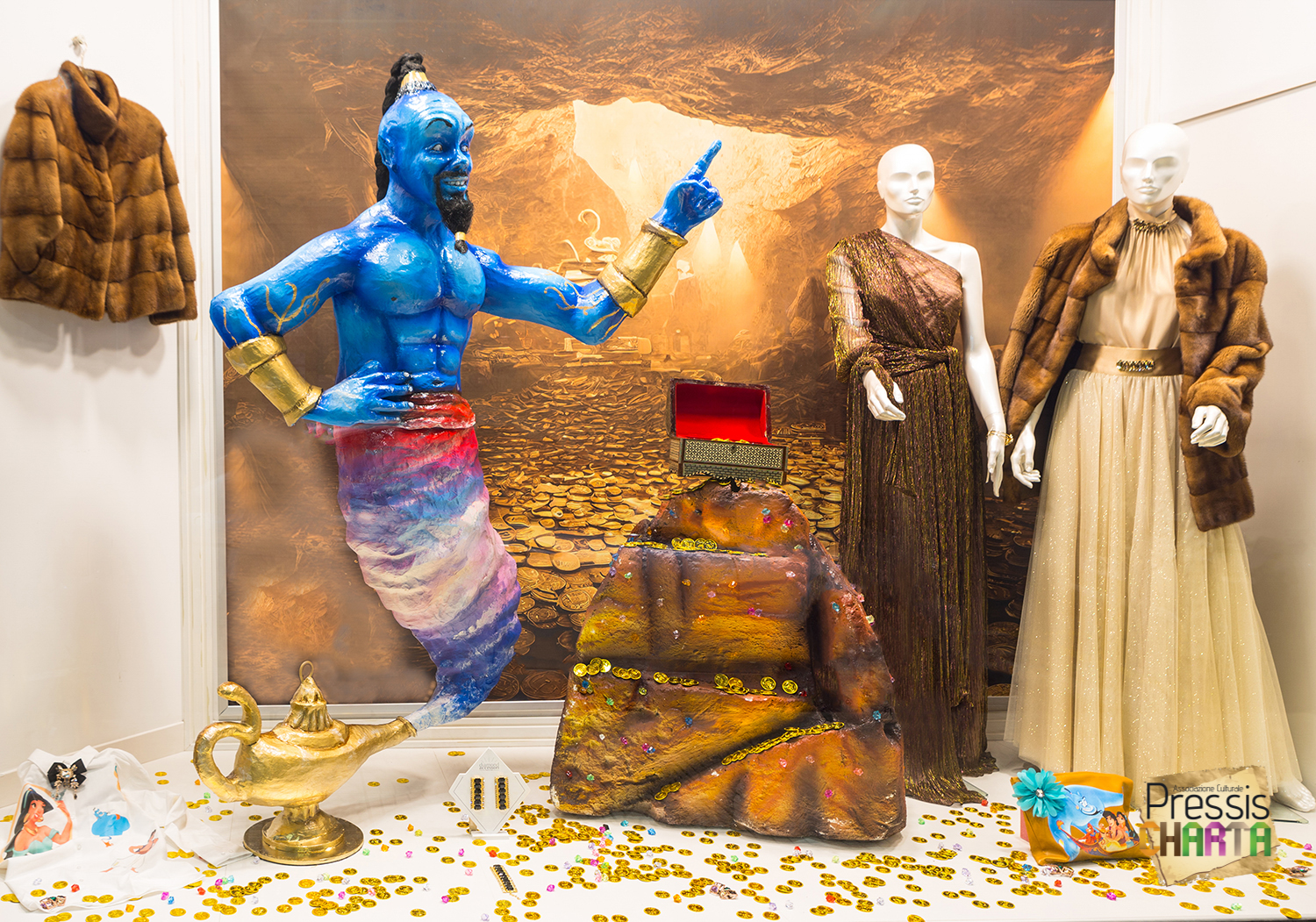 Nello stesso anno, in occasione delle festività natalizie, l’Associazione realizza per il negozio d’abbigliamento La boutique di Carmen, una scenografia in cartapesta dedicata alla fiaba “Aladdin”.