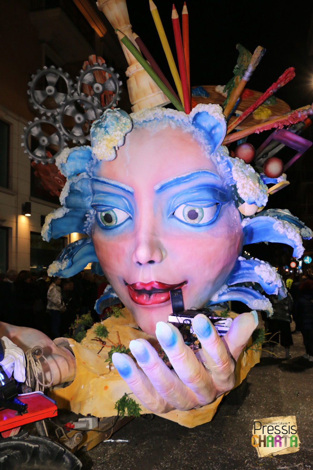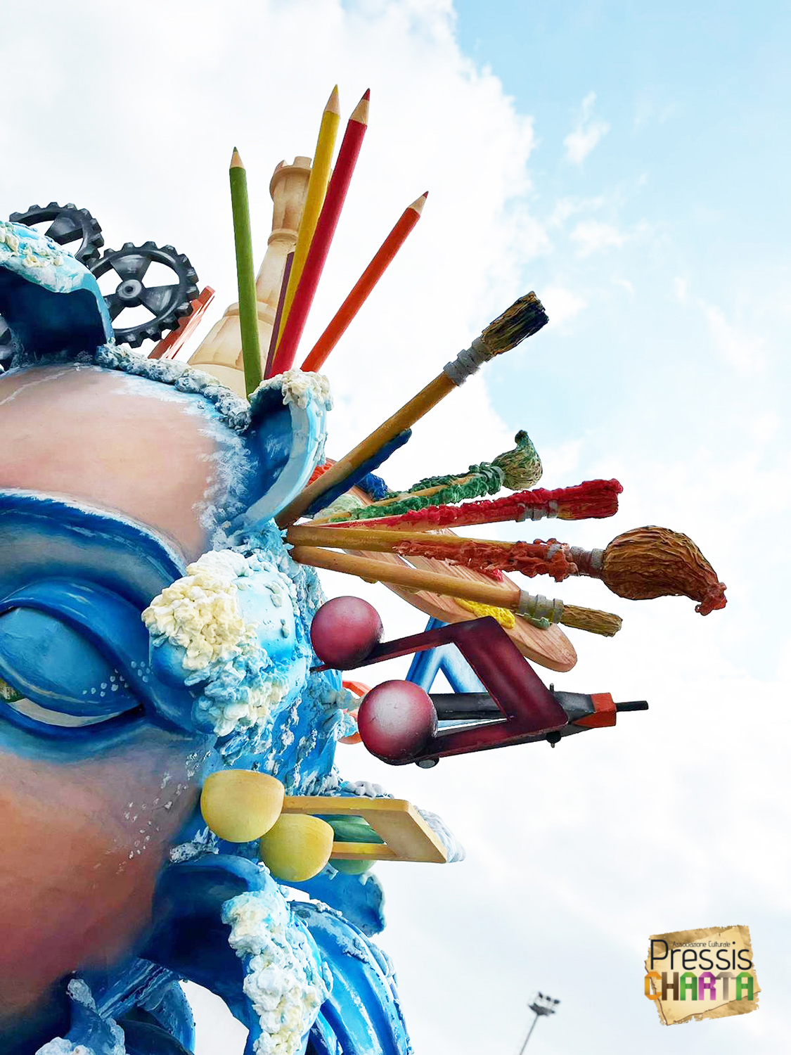 Osservando il carro dal basso verso l’alto scrutiamo in progressione, i pesciolini emotivi, ognuno con espressioni e colori differenti, come i personaggi di “Inside Out” che raffigurano le emozioni.