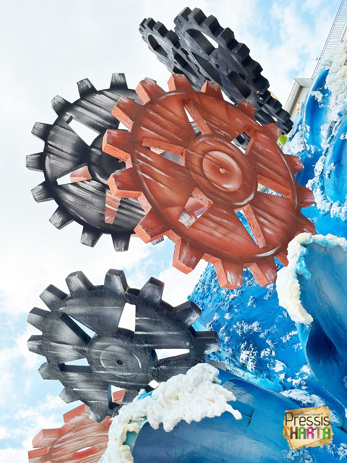 Il tema dell’opera in cartapesta tratta il Mare Nostrum, il mar Mediterraneo, coadiuvato dal progetto scolastico trasversale sulla valorizzazione delle intelligenze multiple, sulle emozioni e sulla consapevolezza dell’individuo che, durante la sua vita, passa dalla fase della dipendenza, all’indipendenza, all’interdipendenza.